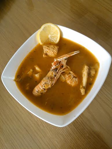 Saute a chopped onion with some garlic cloves, marjoram & mint in a little olive oil. Add 2 tablespoons of kunserva, fish stock & a hint of chilli. Finally add the fish & langoustines. Once cooked the fish can be deboned and cut up in the soup. Boil the rice separately and add it to the fish soup before serving. Serve with a squeeze of lemon.