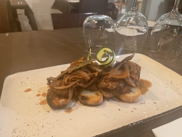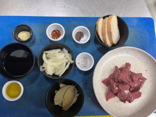 - plate by first adding the toasted bread, place the liver on top and finish with the onion and jus.