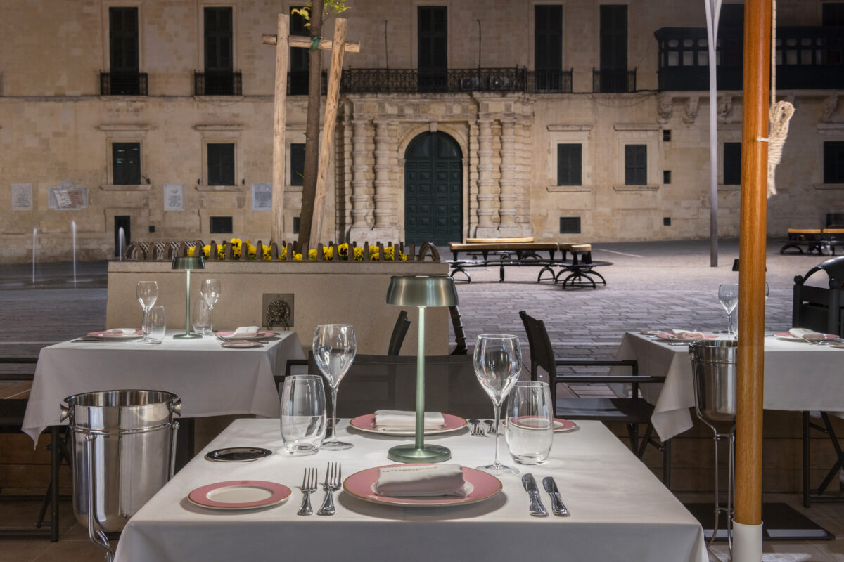 Established in 2017, this restaurant has recently moved to a new location in the historic St George’s Square in Valletta. The terrace accommodates almost 100 guests in full view of the Grandmaster’s palace. With tables adorned in crisp linen and comfortable seating, this terrace is perfect for al fresco dining most of the year. The indoor seating area hosts 40 guests. The décor is striking, with a stunning pink bar and atmospheric lighting, grey feature walls and low lighting that glints off polished cutlery, creating a perfect environment of style.
