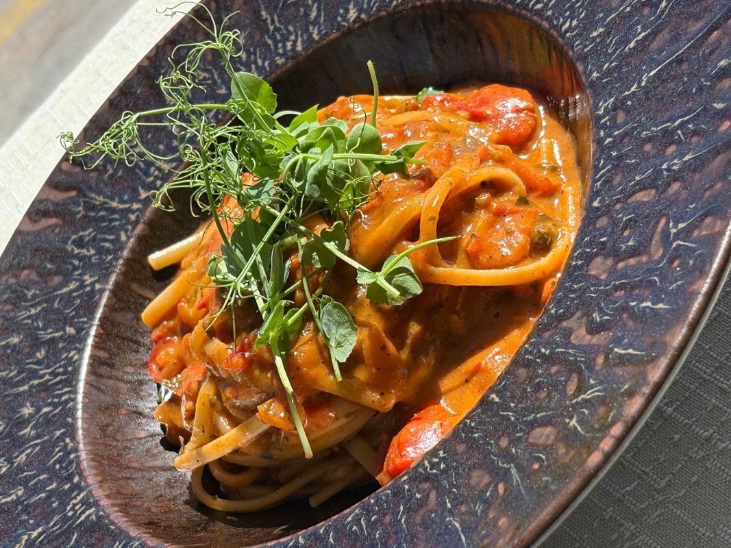 An array of crunchy breads, Bigilla, stuffed olives and sundried tomatoes is presented as you ponder the menu. A range of Crudo and Antpasti starters include fresh Scallops, seared and caramelised in rich Thermidor sauce. The Gamberi Rossi is an artwork with rubyred shelled prawns on a bed of wakame, stracciatella and garnished with pomegranate, mango and caviar. Totally perfect. Main courses of fish, octopus, mussels and clams come in in imagintive combinations. The Involtini di Branzino, seabass fillets snuggly wrapping shelled king prawns in a zesty lemon broth is not only visually stunning, but also beautifully tender. Linguine with half a lobster shines from the specials menu, irresistibly tempting. For those committed carnivores, fine cuts of steak feature with creative flair. There is a pronounced focus on local cuisine, whether it is the freshest fish or a variety of traditional dishes. Desserts are homemade daily, and the Banoffee, creamy and indulgent, is particularly recommended.