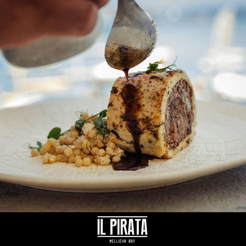 Il Pirata offers a varied menu of tasty and creative food, providing a memorable food experience, with a choice of snacks, pizza, pasta or an à la carte 5-course menu that includes vegetarian dishes. The restaurant is located in Mellieħa Bay, right on the beach, with views of the bay and the sound of the sea lapping the shore from the large terrace. Meanwhile inside, there is also ample seating, where the modern lighting and furniture create a relaxed, smart and uncluttered atmosphere. The staff is welcoming, friendly and knowledgeable, effortlessly matching a dish with wine to your liking, with the wine stored and served at its ideal temperature.
