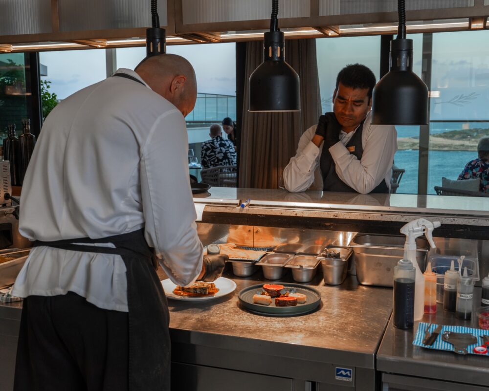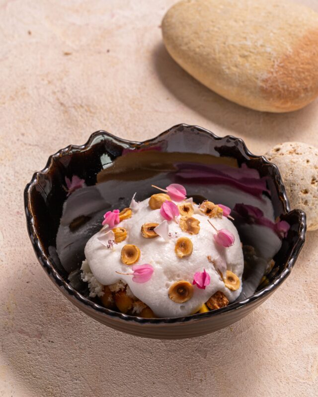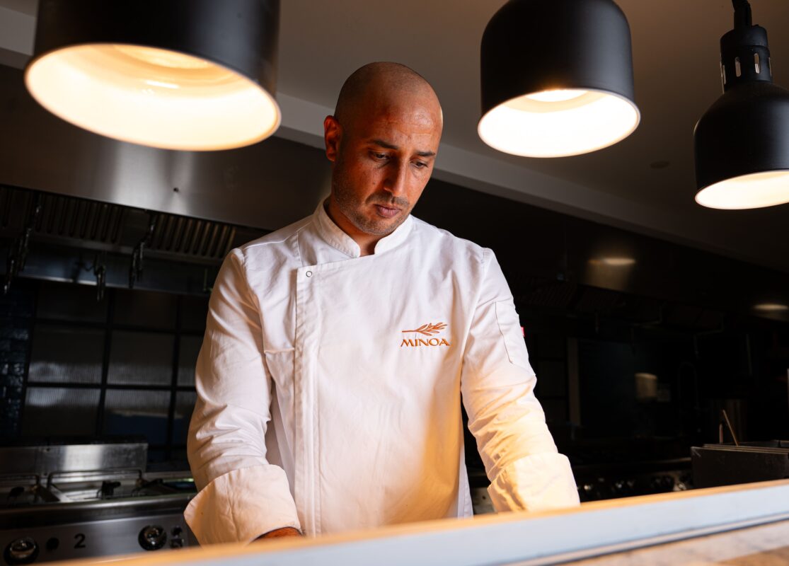Minoa in Qawra offers a Mediterranean-inspired ambience with a contemporary flair, featuring a terrace with a gorgeous view that’s ideal for enjoying sunset drinks on the comfortable loungers. The interior is a refined blend of browns, beiges, taupe, and touches of gold, all enhanced by chic, subdued lighting. Even when the air turns chilly, Minoa’s glass partitions provide shelter, and cosy blankets are available for added comfort, ensuring guests can enjoy the atmosphere all year round. The staff complement the welcoming, relaxed vibe of the space with professionalism and warmth. Seasonality is a point of pride at Minoa, so the menu changes regularly. Diners are welcomed with homemade sourdough bread, leavened for 24 hours for a perfect texture.