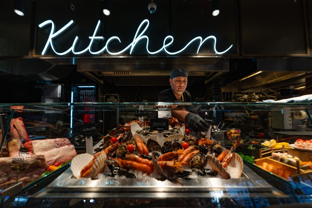 Within the ultra-modern Quad district, Mondo spans a significant space opening at 7am for breakfast. Its advertised phrase ‘Taste the World’ highlights an excellent commitment to dining out. A smoky charcoal interior with warm lighting and shimmering glassware reflects a well-equipped bar, flanked by cabinets showcasing the freshest cuts of meat and fish. The open kitchen hums with activity as chefs prepare sushi, pasta, and cocktails to order. An outside terrace bustles with diners and office workers taking advantage of happy hour whilst pondering the menu, safe in the knowledge that this really is the place to be.