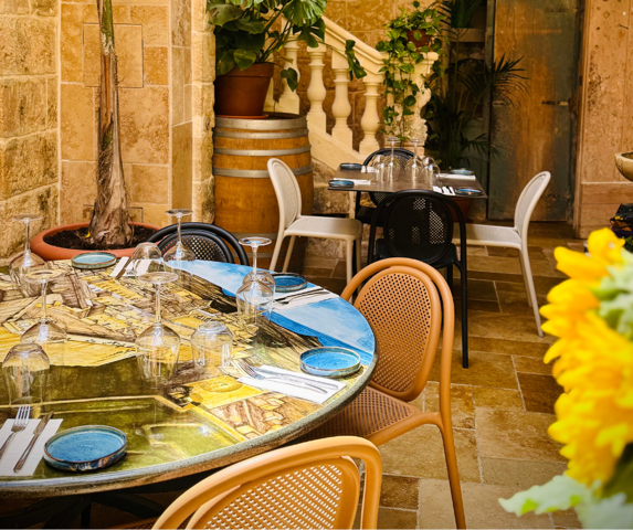 As a venue with all-day trade, the menu is cleverly designed for broad appeal. Diners can opt for casual options and light bites such as sharing platters, wraps, salads, and burgers, or choose a fuller dining experience of starters, pastas, and hearty vegetarian, fish, and meat mains. Familiar favourites such as mussels, prawns, duck, steak, and falafel all feature, but in keeping with the setting, these sit alongside dishes designed to celebrate Maltese heritage ingredients and recipes such as cheeselets, swordfish, sausages, rabbit, and slow-cooked pork. The result is a menu that feels both universally familiar, yet proudly Maltese at heart.