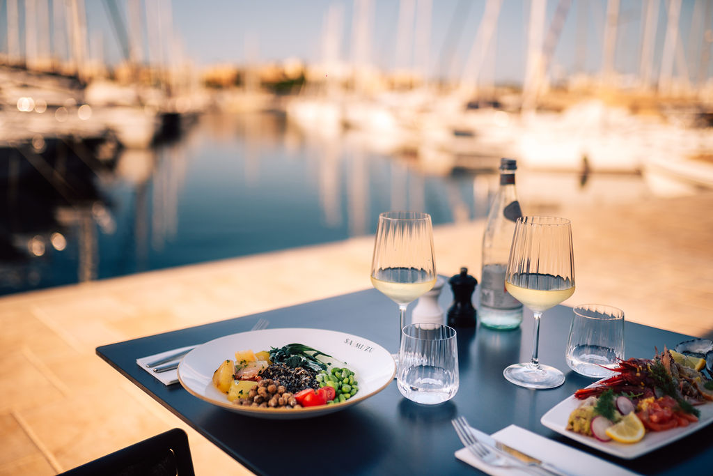 Not many places can tick all the right boxes, but SAMIZU does. A gorgeous setting, tasteful design, spectacular food and impeccable service have made SAMIZU an instant hit within the local foodie circle. Al fresco dining regales with gorgeous views of the Marina di Valletta, complemented by colonial white marble, taupe-hued, velvety armchairs and stylish heaters for when the sea breeze gets chilly. The indoor area is equally stunning with its grey marble feature wall, full-length windows and gentle colour scheme.