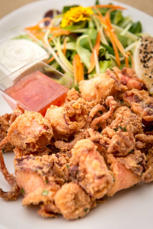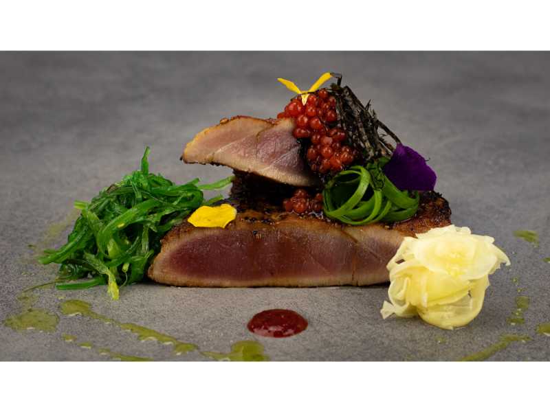 The menu here is varied and covers all the classic favourites like steak and game dishes, a range of homemade fresh pasta options, Mediterranean and seafood dishes, locally caught fresh fish and the popular signature dishes of tuna steak and Trio di Calamari. The menu is presented in both terse and verbose formats, making it easy to see accompanying drink options and also to identify the many vegetarian, vegan, lactose/gluten/nut-free options. Food is attractively plated.