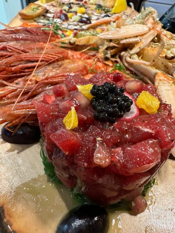 A walk through Bugibba Square, bustling with energy, is quickly calmed by the serene ambience of Venus Restaurant. Situated on the corner of the square, this fine dining, family-run establishment is led by brothers Roberto and Andreas, who took over from their parents, Reuben and Joanne. The subtle décor and intimate table settings create a perfect setting for a romantic evening or a special family meal, while the outdoor area provides a lively space for friends, paired with excellent food, flowing cocktails, wine, and attentive service.